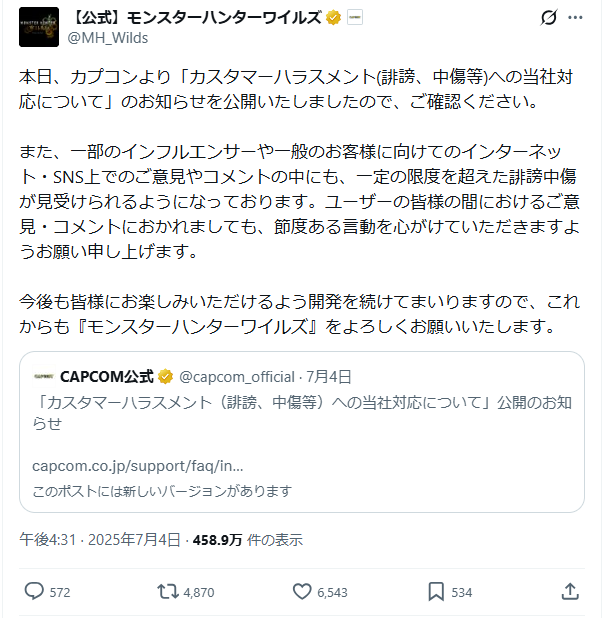 発売最初の辺りの強気すぎるワイルズ運営のポストのキレはMRでも帰ってくるかな?🥺